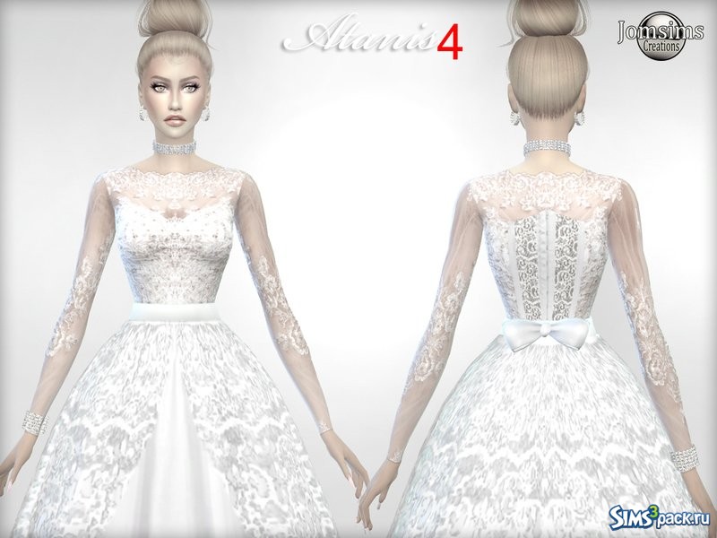 Скачать свадебное платье annagathe от jomsims к симс 4 Переходите прямо сейчас и скачивайте моды и дополнения для симс 4 бесплатно! Ажурное свадебное платье с открытой спиной, доступно 5 цветов.
